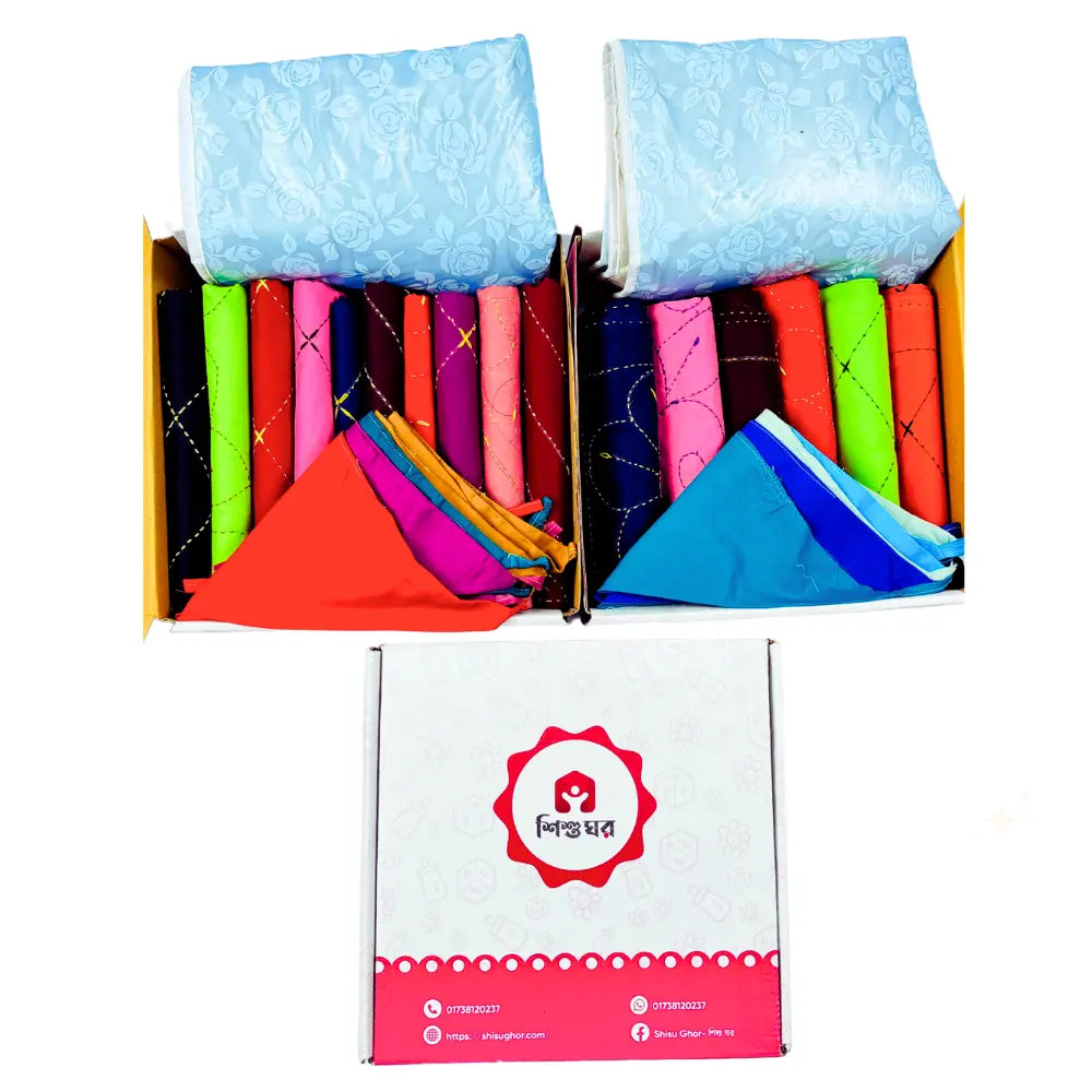 ✅ কম্বো ২:  ১০ টি উন্নতমানের কাঁথা, ৬ টি ন্যাপি, এবং ১ টি ইউরিন ম্যাট—একদম ফ্রি!