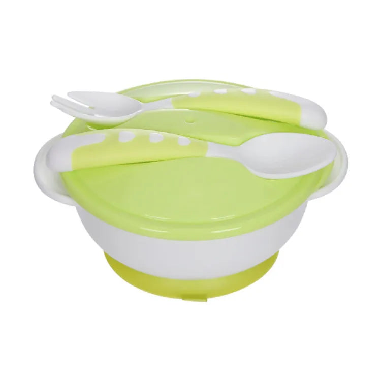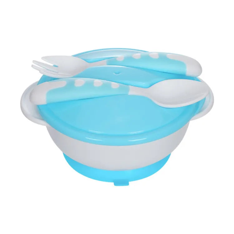 The bowl body is equipped with non-slip handles. The spoon and fork are rounded to ensure that the baby will not be scratched, and it is convenient for the baby to eat independently.